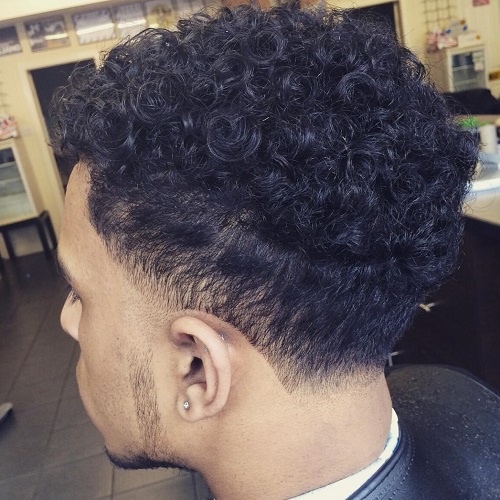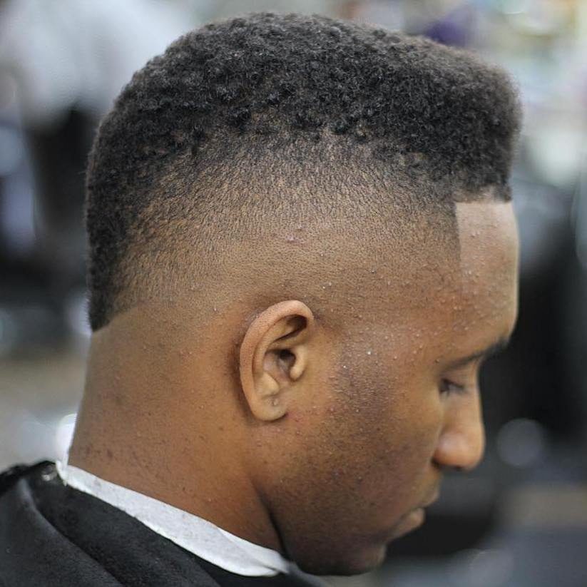Black men often opt for a high fade haircut, featuring complete disappearing of hair much higher than the natural lines of hair growth at the temples and back of the head. With a low fade hair disappears about an inch above the lines of hair growth, while a regular fade is something in between these two. As a rule, when you are going to have your first fade, they recommend to start from its regular type.