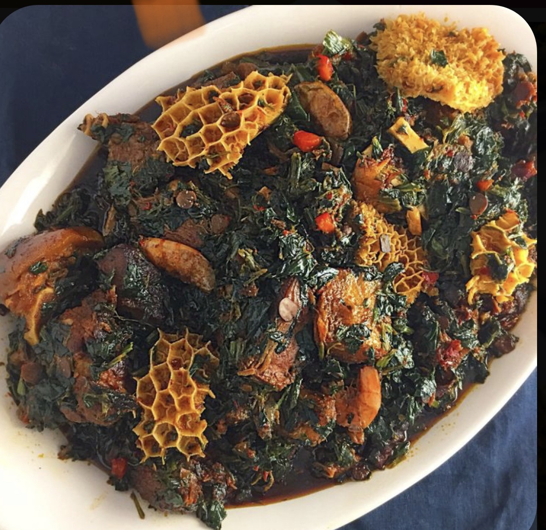4. This concentrated stock provides to the depth of flavour of Efo riro (vegetable soup).