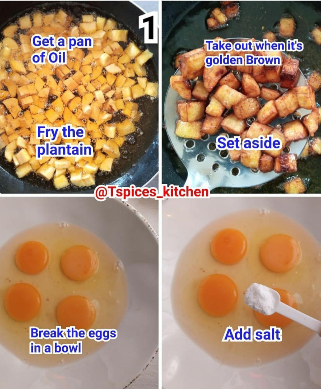 Get a pan and add your oil. Fry the plantain till it's golden brown, set aside.