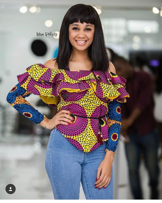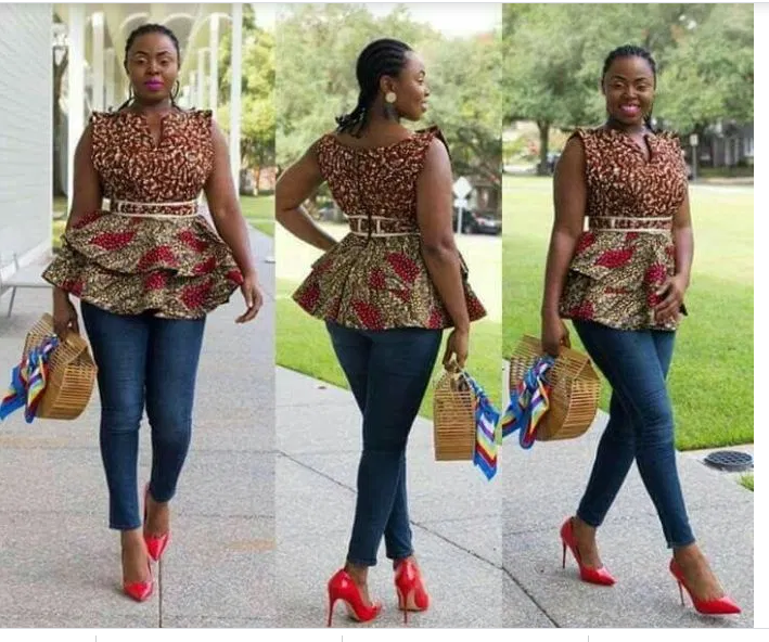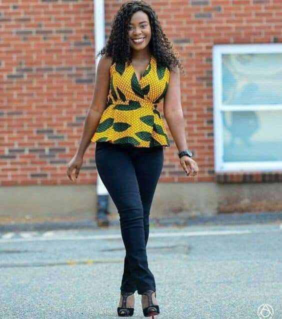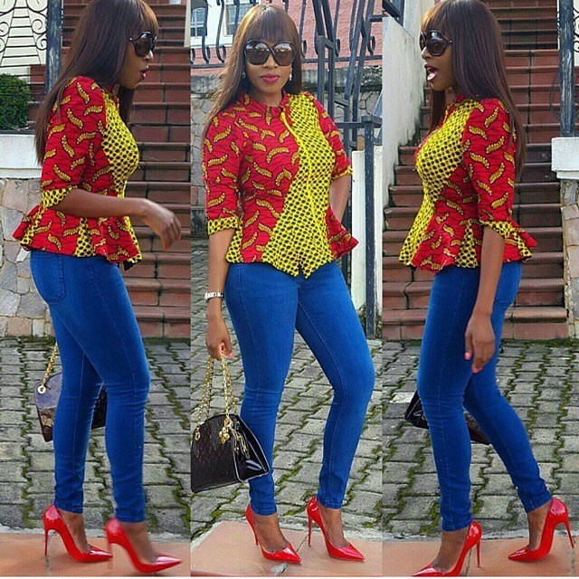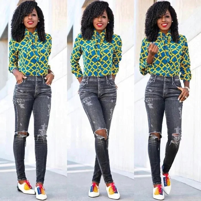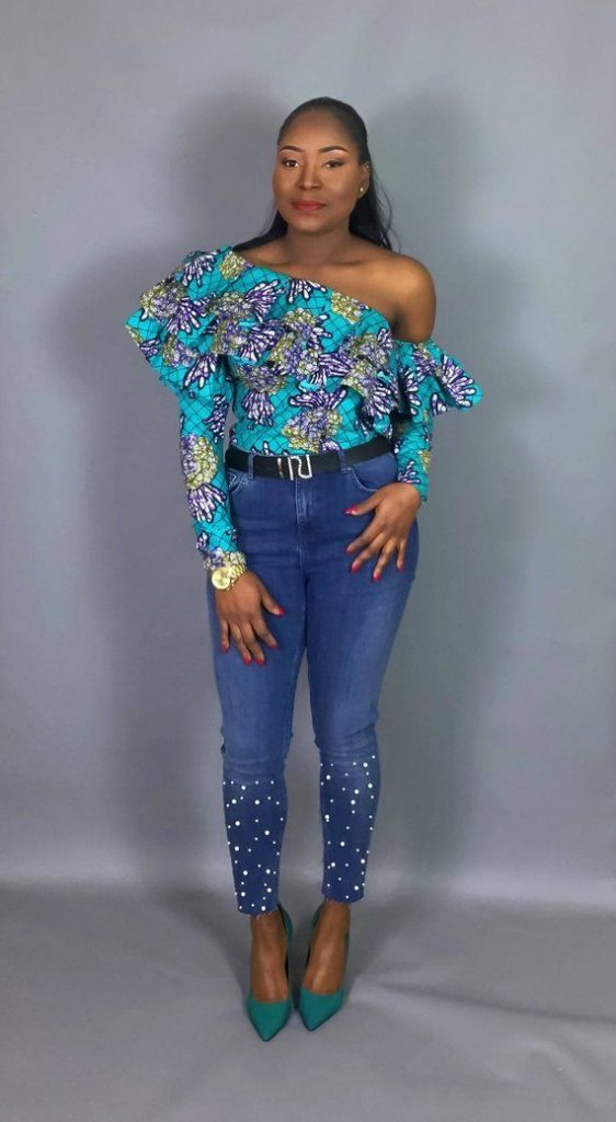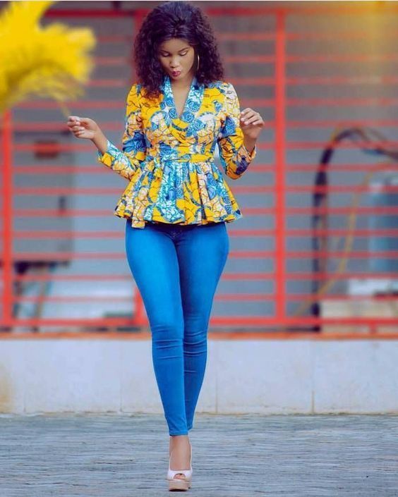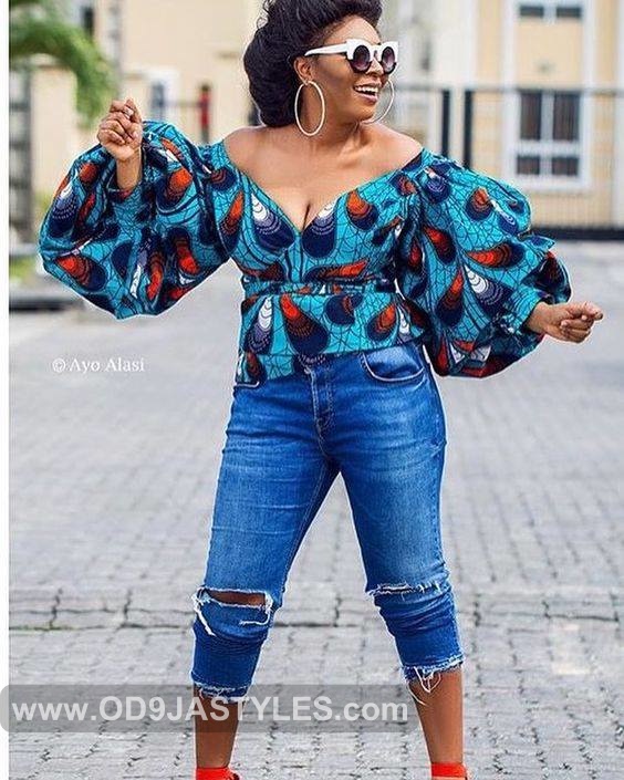 One of the best ways to wear Ankara is to pair an Ankara top with jeans. Pairing Ankara tops and jeans is one way ladies love to rock their denim as they take advantage of the huge love for the African print .
