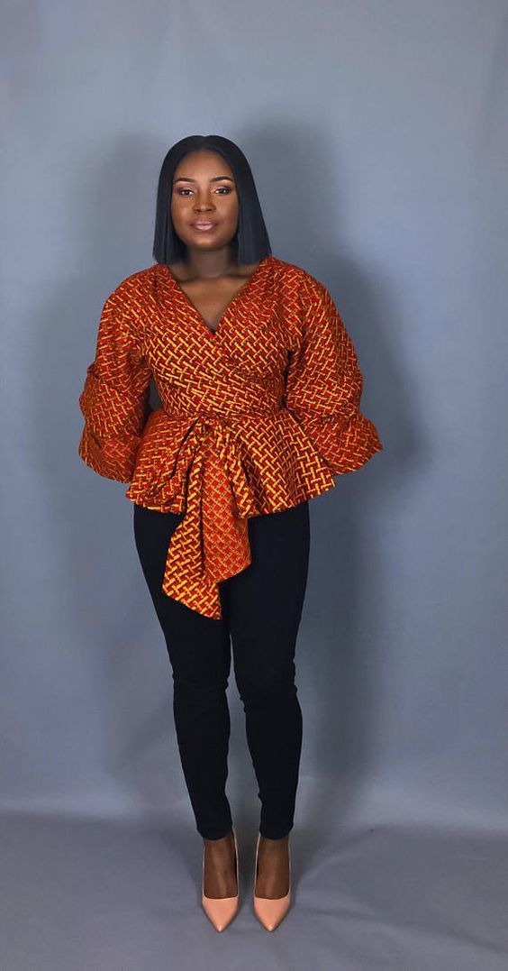 There are different styles you can now wrong in your Ankara tops.You can equally make it a wrap top.
