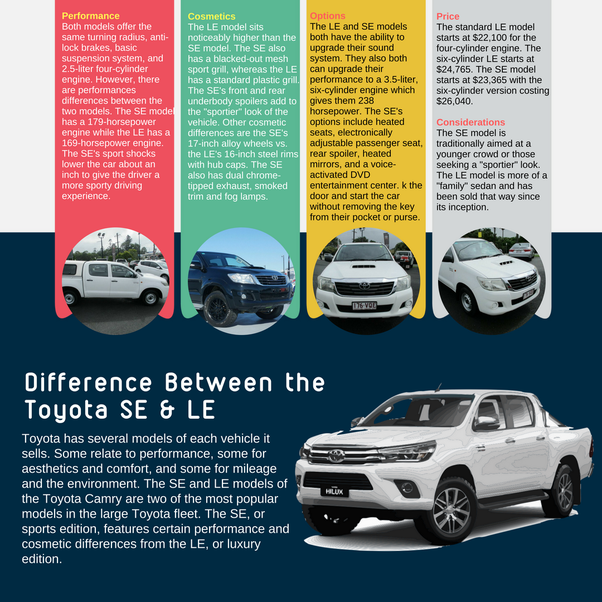The meaning of trim levels of a car : CE, DX, L, LE, S, SE, SLE, SR5, VE, XL, XLE, XLS, XR, and XRE