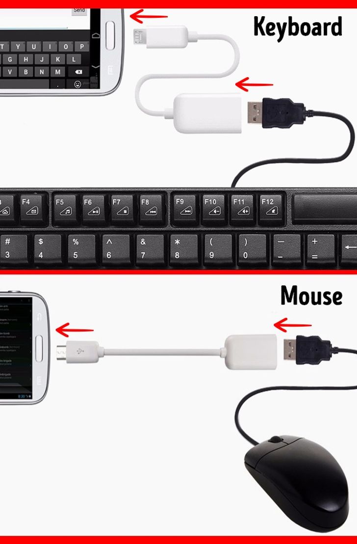 Android supports mice and keyboards. This can be useful if your screen is broken or if you just need to enter a lot of text. All you need to attach a keyboard or mouse to your Android phone is a USB cable.