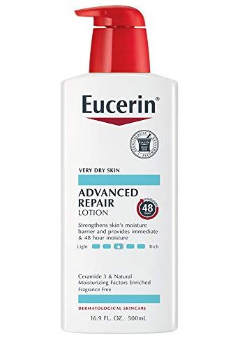 Advanced Repair LotionYou'll feel the effects of Eucerin's lotion, as it was a top scorer for skin-softening and long-lasting moisturization. It didn't have the highest moisturizing percentage, but consumers really loved the texture and spreadability of it — the lightweight texture is hydrating enough for warmer months without being heavy or cloying on the skin.