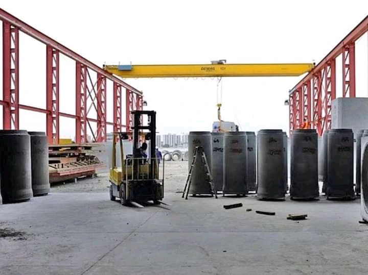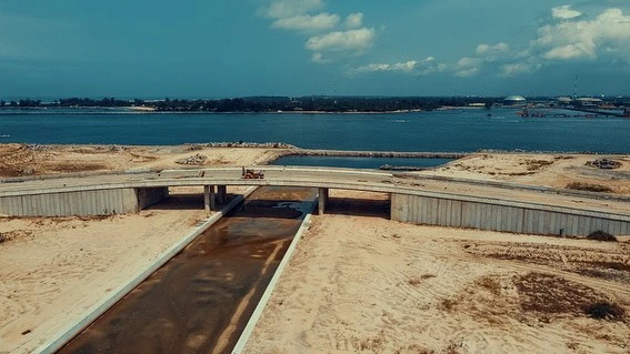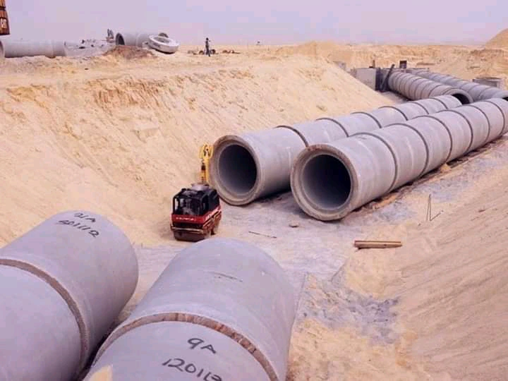 The construction of the drainage network in Eko Atlantic City is a precise task and has been repeated numerous times throughout the project. The concrete pipes are produced in the pipe factory located in Eko Atlantic City.